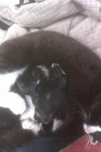 Här kommer några bilder på kattungarna, svårt att få bra bilder med min mobil och de rör på sig hela tiden så det blir suddigt, men man ser ju lite iaf.